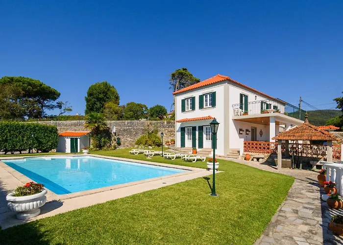 Casa Bacelar设有4间卧室,游泳池以及大海景的凉亭. 这座别墅距离Torre do Relógio de Caminha只有10分钟的车程.